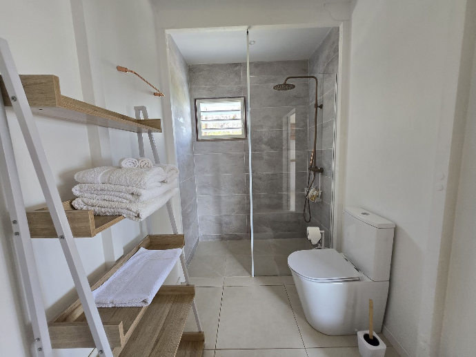 La piscine privée est l'atout incontesté de votre logement de vacances, que ce soit pour vous rafraîchir ou faire des longueurs. Plusieurs coins détente sont aménagés, parfaits pour vous prélasser au soleil la journée et profiter de belles soirées étoilées. La douche extérieure vous permet de vous rincer de retour de la plage et vous offre une alternative relaxante à votre douche intérieure.